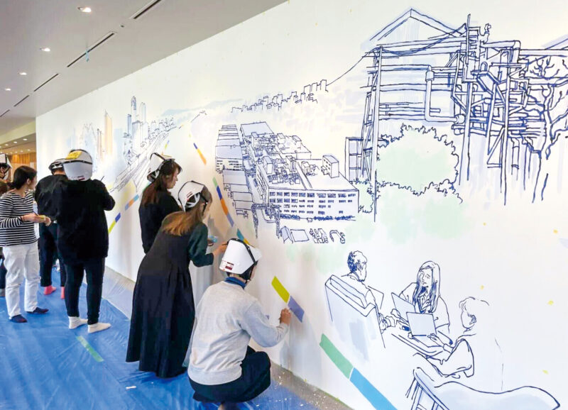 プロジェクトの一例を挙げると、NEC玉川事業場(川崎市)では、3組のアーティストと30人の社員がチームに分かれ、三つの壁画を作りました。半年ぐらいかけてアーティストと社員がワークショップを重ね、NECのどんな側面をアートにしたいかや、アーティストのスタンスについて話し合いながら進めました。「参加して良かった」「自社への印象が変わった」などの声が多く、個展を見に行くなどの交流が今も続いているそうです。